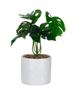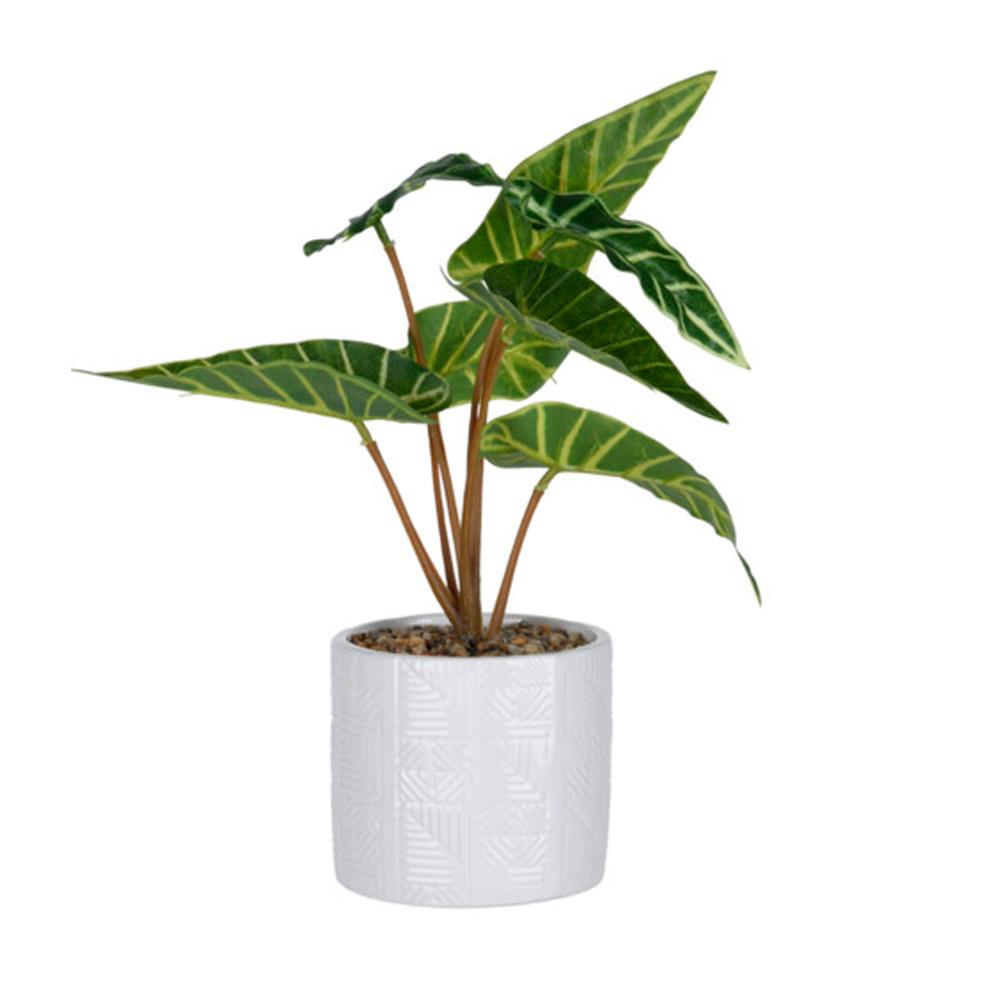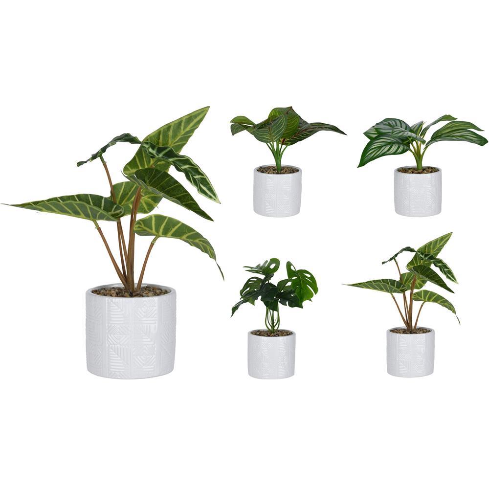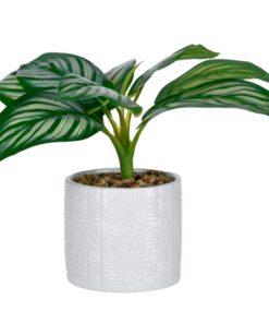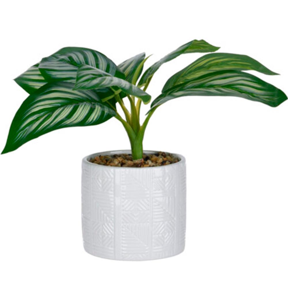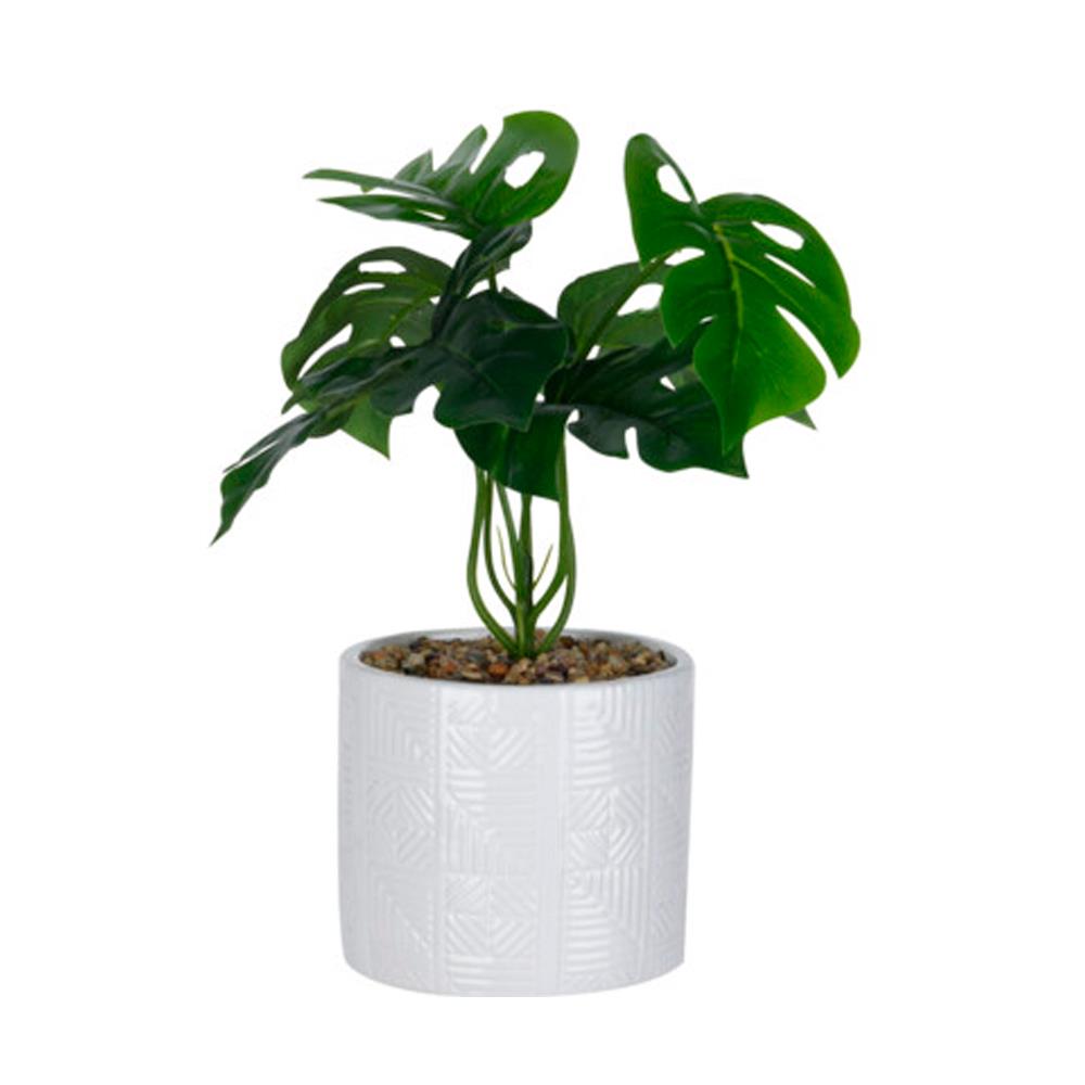 Φυτό τεχνητό 25εκ., σε λευκό κεραμικό γλαστράκι Ø11×10εκ.