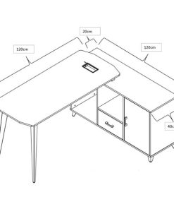 Γραφείο γωνία Nextdeco σε μαύρη και οακ απόχρωση Y75x120x60-Y64,5x120x40