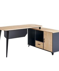 Επαγγελματικό γραφείο με δεξιά γωνία, κατασκευασμένο από μελαμίνη υψηλής ποιότητας, σε μαύρο και oak απόχρωση.