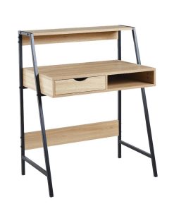 Γραφείο με μαύρο μεταλλικό σκελετό και ξύλινη επιφάνεια. Μοντέρνος και λειτουργικός σχεδιασμός που ταιριάζει σε κάθε χώρο εργασίας ή μελέτης. Η ξύλινη επιφάνεια του γραφείου, όπως και το συρτάρι αποθήκευσης, προσφέρουν άνετο χώρο για την τοποθέτηση του υπολογιστή, των βιβλίων και των γραφικών ειδών. Οι καθαρές γραμμές και η απλή αισθητική το καθιστούν ιδανικό για μοντέρνους και minimal χώρους.