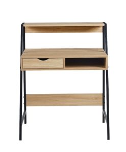 Γραφείο με μαύρο μεταλλικό σκελετό και ξύλινη επιφάνεια. Μοντέρνος και λειτουργικός σχεδιασμός που ταιριάζει σε κάθε χώρο εργασίας ή μελέτης. Η ξύλινη επιφάνεια του γραφείου, όπως και το συρτάρι αποθήκευσης, προσφέρουν άνετο χώρο για την τοποθέτηση του υπολογιστή, των βιβλίων και των γραφικών ειδών. Οι καθαρές γραμμές και η απλή αισθητική το καθιστούν ιδανικό για μοντέρνους και minimal χώρους.