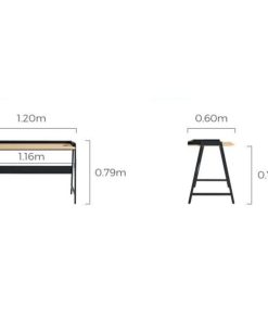 Γραφείο μεταλλικό σκελετό Nextdeco και ξύλινη επιφάνεια σε φυσικό χρώμα μαύρο Υ79x120x60εκ