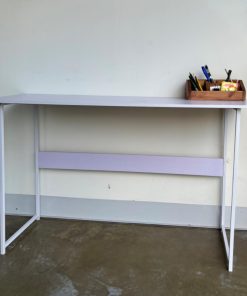 Γραφείο μίνιμαλ με λευκό σκελετό και λιλά επιφάνεια 120x45xΥ72εκ.