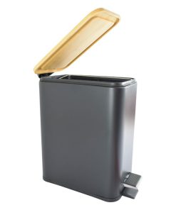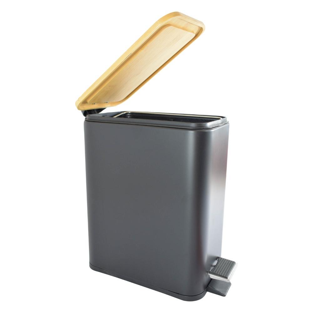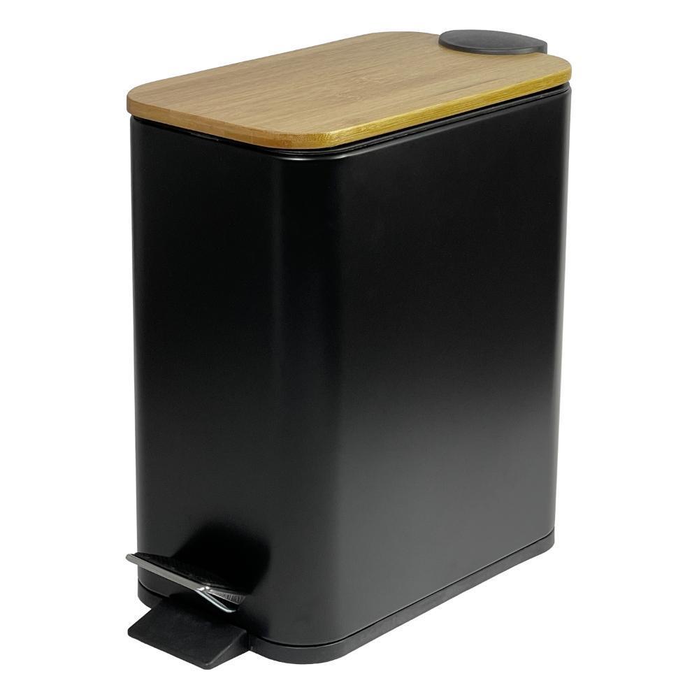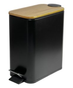 Κάδος απορριμμάτων με απαλό κλείσιμο 6l – ξύλινο καπάκι, μαύρο χρώμα.