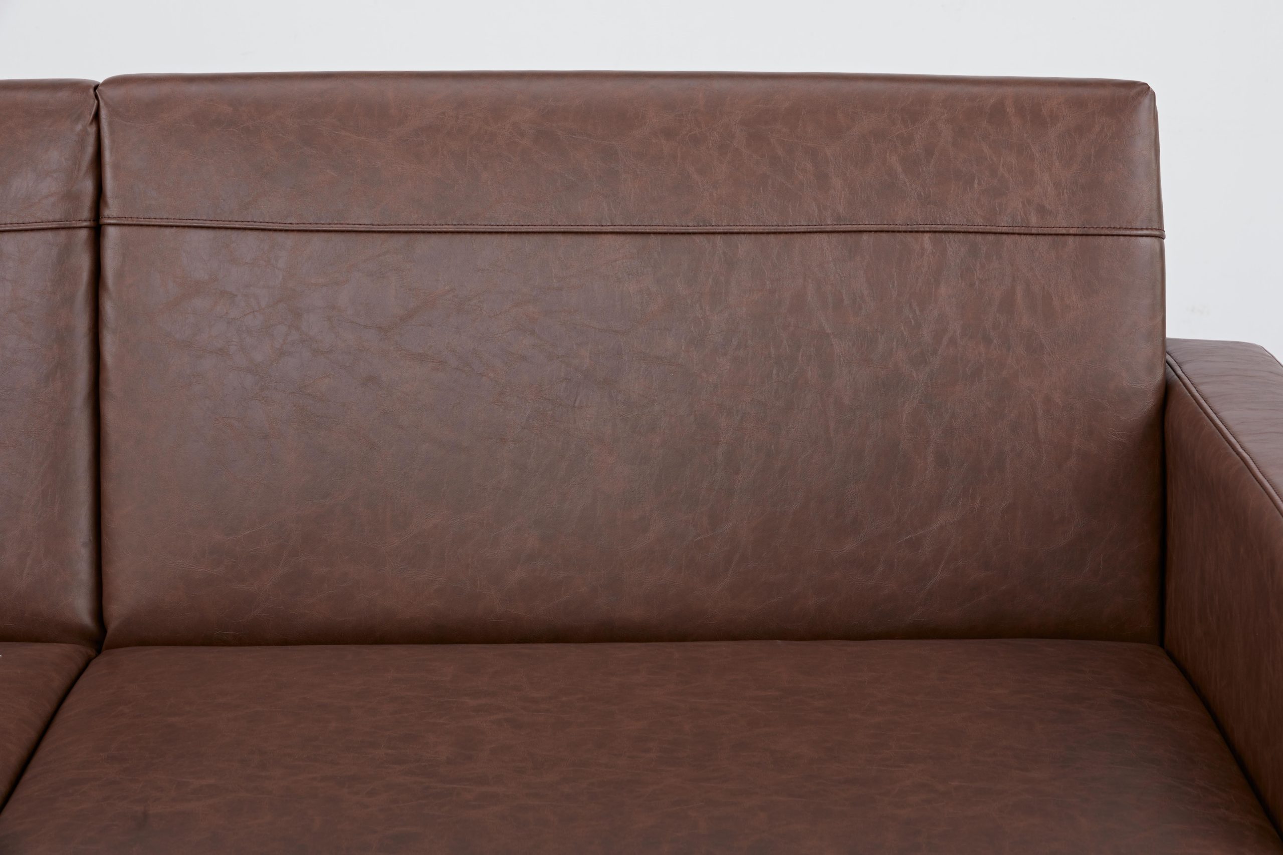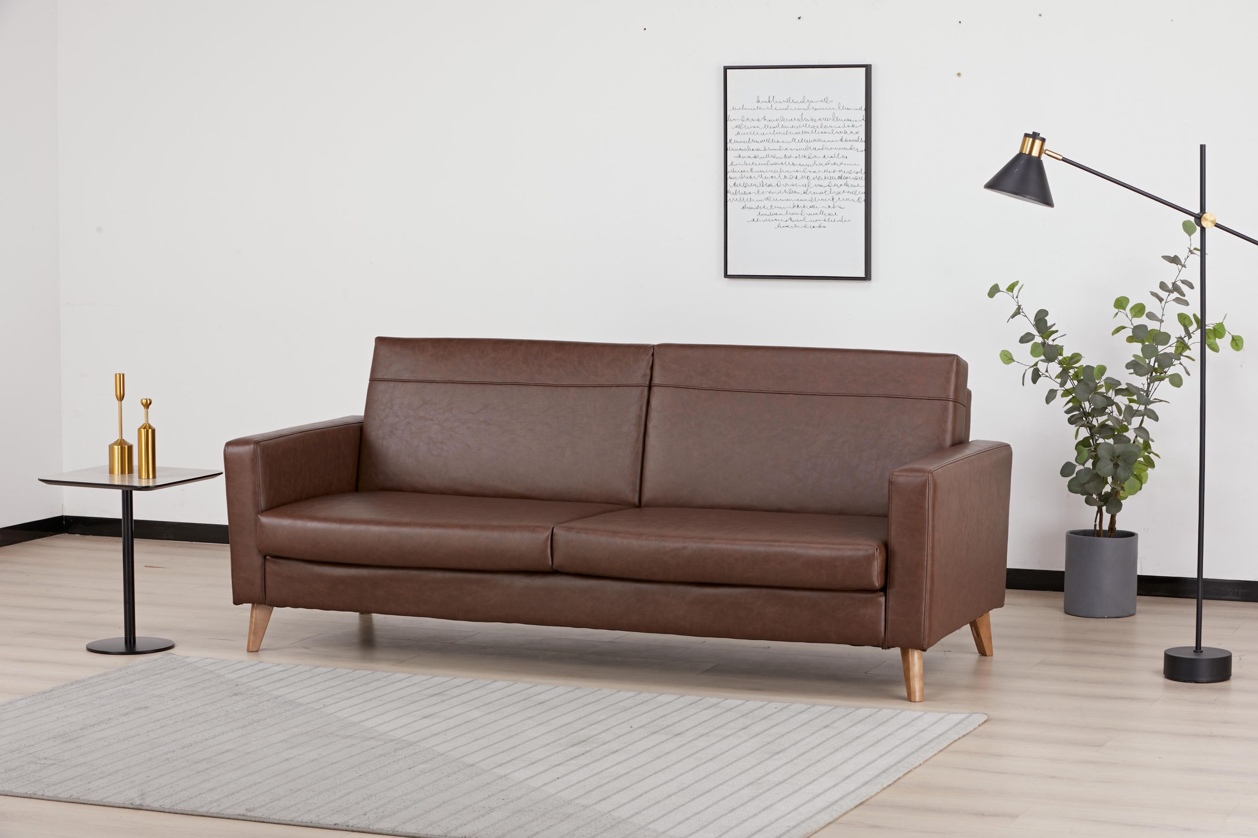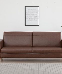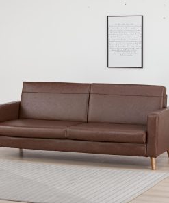 Καναπές κρεβάτι τριθέσιος Nextdeco Soho καφέ Υ81x201x90εκ., με ποιοτική καφέ δερματίνη και ξύλινα πόδια.