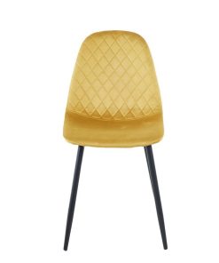 Καρέκλα μεταλλική Nextdeco Iris μουσταρδί Υ84,5x43x40 εκ ιδανική επιλογή για να προσθέσετε μια πινελιά κομψότητας και άνεσης στον χώρο σας, είτε πρόκειται για την τραπεζαρία, το γραφείο, είτε για οποιοδήποτε άλλο δωμάτιο. Επενδυμένη με βελουτέ ύφασμα υψηλής ποιότητας που προσδίδει μια αίσθηση πολυτέλειας και άνεσης.Τα μαύρα μεταλλικά πόδια προσφέρουν μια σύγχρονη και στιβαρή βάση στην καρέκλα, ενώ οι καθαρές γραμμές ενισχύουν την μοντέρνα αισθητική.