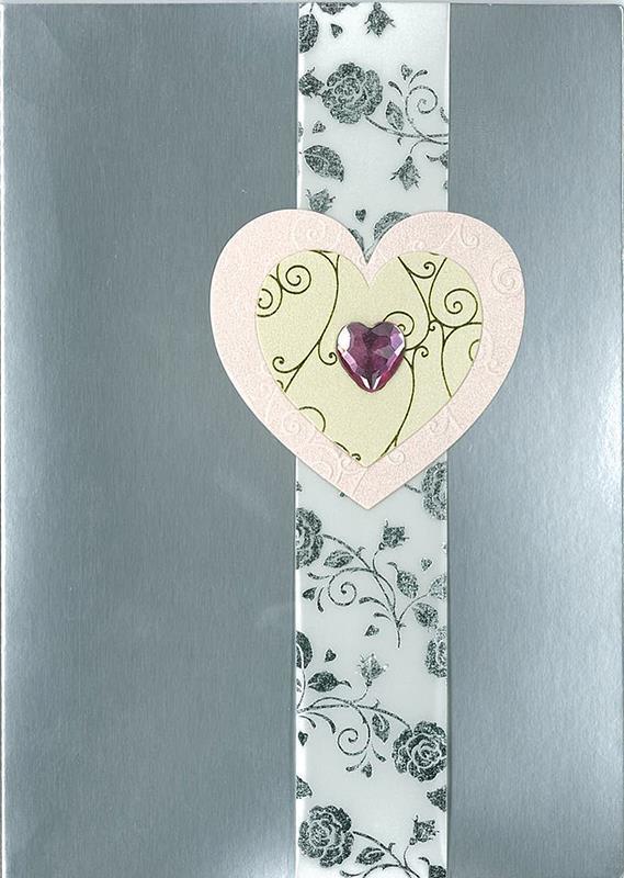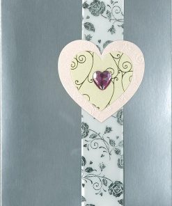 Κάρτα-προσκλητήριο με φάκελο “Καρδιά ροζ-ασημί” 13×18εκ.