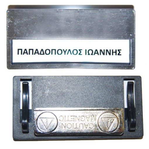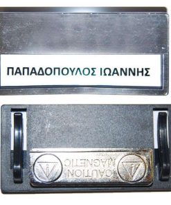 Καρτελάκι ονόματος (κονκάρδα συνεδρίων) με μαγνήτη.