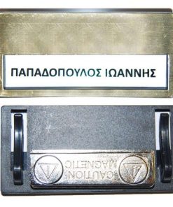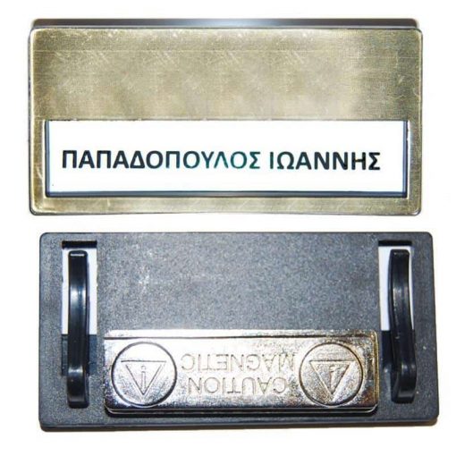 Καρτελάκι ονόματος (κονκάρδα συνεδρίων) με μαγνήτη.