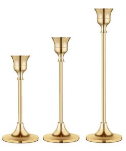 Κηροπήγια με κωνικό σχήμα σετ 3 τεμαχίων σε χρυσό χρώμα, μεταλλικά