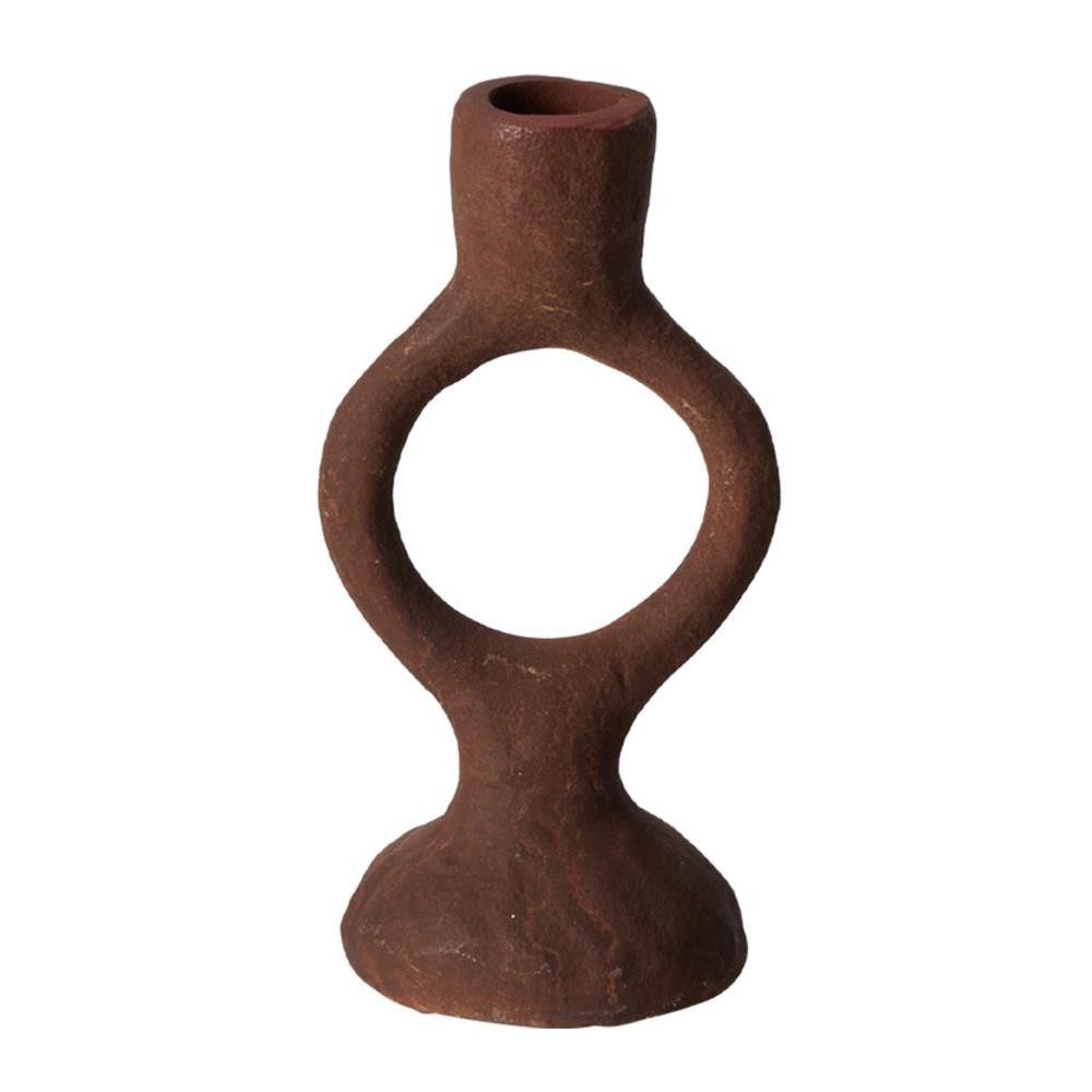 Κηροπήγιο αλουμινίου στρογγυλό στη βάση καφέ Υ16,5εκ.