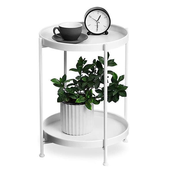Κομοδίνο – τραπέζι στρογγυλό με 2 επίπεδα λευκό Ø42×50εκ.