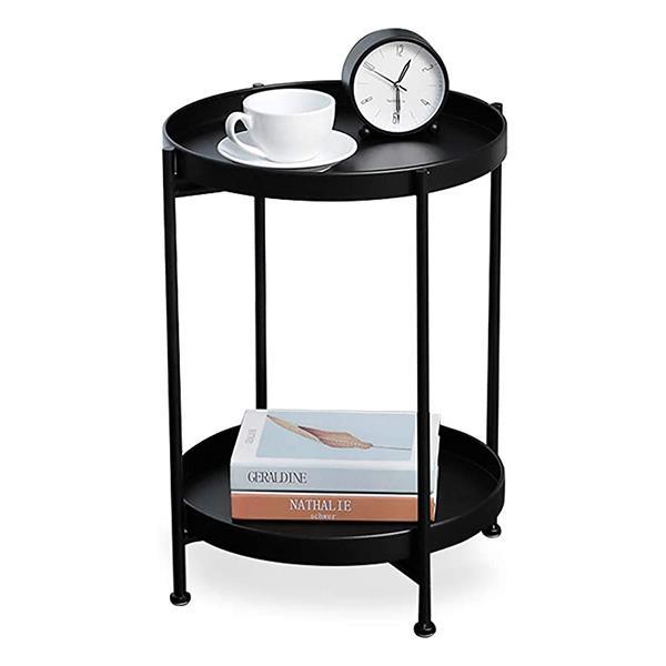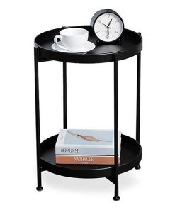 Κομοδίνο – τραπέζι στρογγυλό με 2 επίπεδα μαύρο Ø42×50εκ.