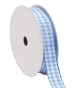 Κορδέλα καρώ με ούγια γαλάζια 25mm ρολό 45μ.