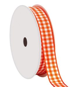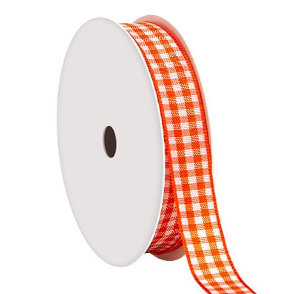 Κορδέλα καρώ με ούγια πορτοκαλί 15mm ρολό 45μ.
