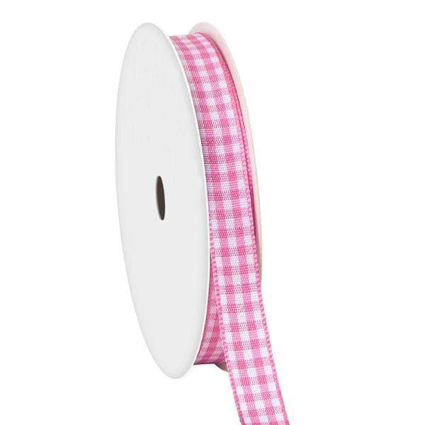 Κορδέλα καρώ με ούγια ροζ 6mm ρολό 45μ.