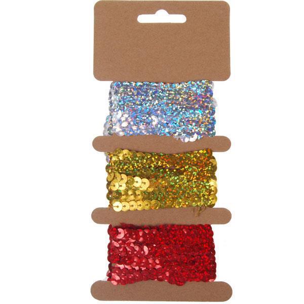 Κορδέλα παγιέτα 6χιλ. x2μ. κοκτέηλ 3 χρώματα