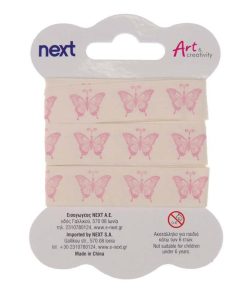 Κορδέλα πεταλούδες ροζ βαμβακερή 1.5εκ. x 2 μέτρα