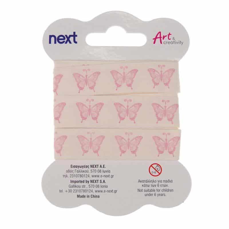 Κορδέλα πεταλούδες ροζ βαμβακερή 1.5εκ. x 2 μέτρα