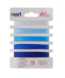 Κορδέλα σατέν σε blister, σε 5 αποχρώσεις του μπλε.