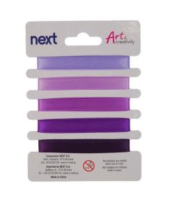 Κορδέλα σατέν σε blister, σε 5 αποχρώσεις του μωβ.