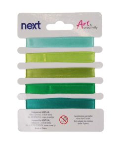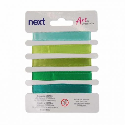 Κορδέλα σατέν σε blister, σε 5 αποχρώσεις του πράσινο.