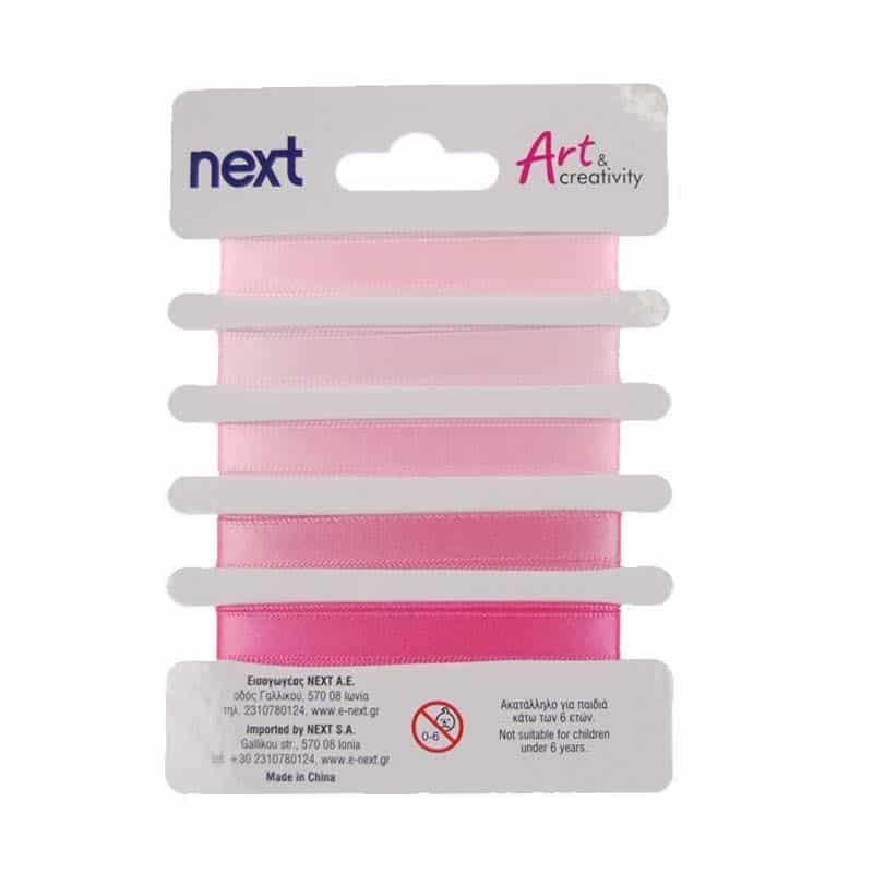Κορδέλα σατέν σε blister, σε 5 αποχρώσεις του ροζ.
