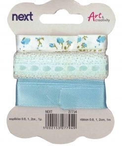 Κορδέλες γαλάζιες 3 σχέδια 0,6εκ,1εκ,2εκ. x 1 μέτρο