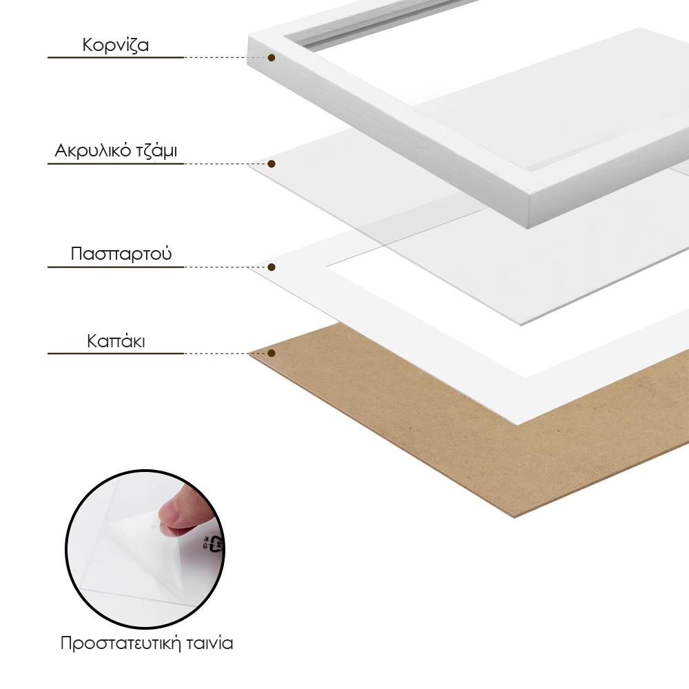 Κορνίζα τοίχου ξύλινη λευκή με ακρυλικό τζάμι Υ30×21εκ.