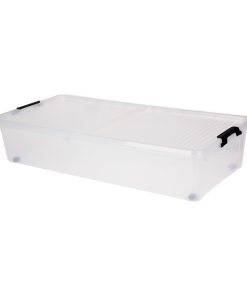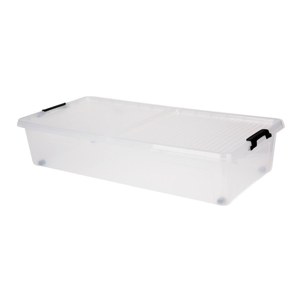 Κουτί αποθήκευσης με μαύρα χερούλια και ρόδες.