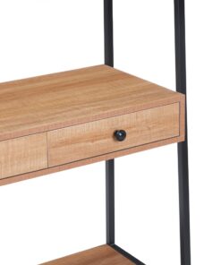 Κρεμάστρα οργάνωσης ρούχων Nextdeco. Ο σκελετός από μέταλλο με ηλεκτροστατική βαφή σε μαύρο ματ χρώμα προσφέρει σταθερότητα, ενώ τα ράφια είναι από MDF 15mm με επένδυση μελαμίνης που δίνει φυσική ξύλινη όψη και ανθεκτικότητα. Ιδανική για σαλόνι, κουζίνα, χωλ ή γραφείο, αποτελεί λύση αποθήκευσης με κομψό industrial χαρακτήρα.