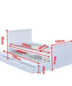 Κρεβάτι μονό Nextdeco Elliot (για στρώμα 90×190εκ.) με έξτρα συρόμενο κρεβάτι – αποθηκευτικό χώρο λευκό χρώμα Υ90x100x210εκ