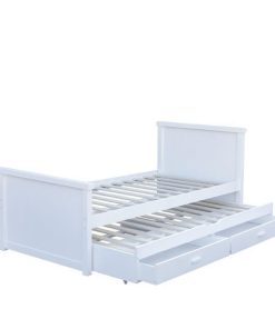 Κρεβάτι μονό Nextdeco Elliot (για στρώμα 90×190εκ.) με έξτρα συρόμενο κρεβάτι – αποθηκευτικό χώρο λευκό χρώμα Υ90x100x210εκ