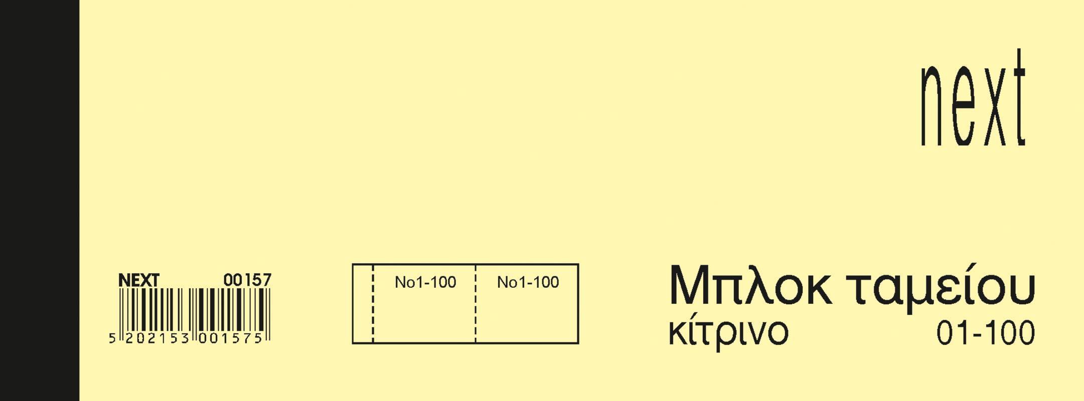 Μπλοκ ταμείου (λαχνοί) με αριίθμηση 01-100 σε απλό κίτρινο χαρτί