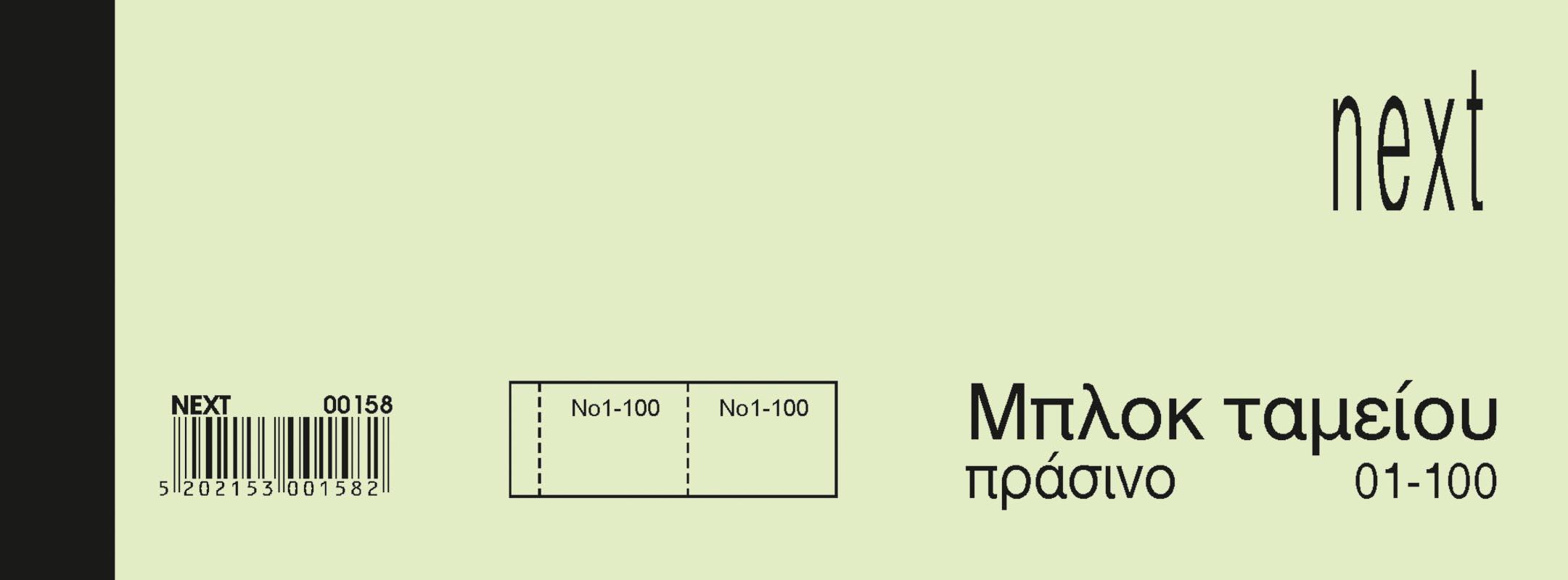 Μπλοκ ταμείου (λαχνοί) με αριίθμηση 01-100 σε απλό πράσινο χαρτί
