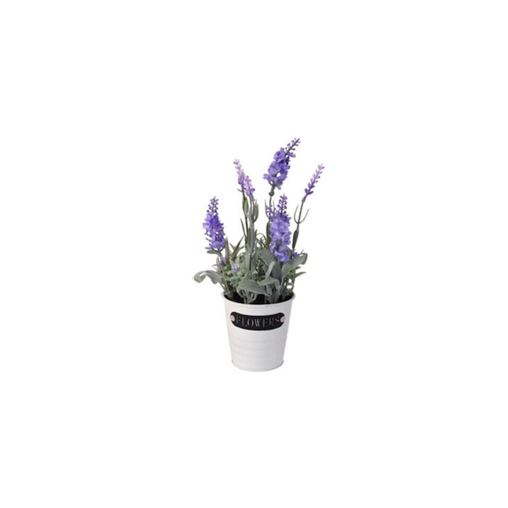 Λεβάντα σε μεταλλικό λευκό κασπώ, ύψους 29εκ.