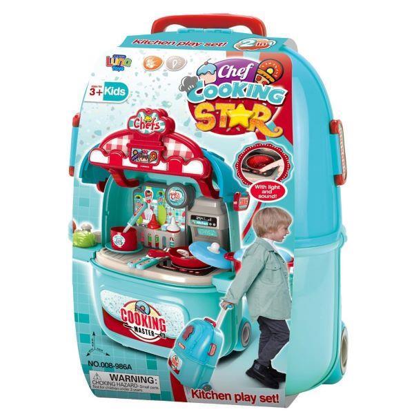 Βαλιτσάκι Κουζινικά Luna Toys με φως και ήχο, ιδανικό παιχνίδι ρόλων που θα ενθουσιάσει τα παιδιά και θα βοηθήσει στην ανάπτυξη της φαντασίας, κινητικών δεξιοτήτων και όχι μόνο! Περιλαμβάνει διάφορα εργαλεία. Διαστάσεις κουτιού: Υ36x27x16,5εκ.