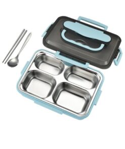 Lunch box από inox με 4 θήκες σε μπλέ χρώμα 1500ml. Διαθέτει συνολικά 4 χώρους για φαγητό και χώρισμα για τα μαχαιροπίρουνα. Ενσωματωμένος δακτύλιος σφράγισης σιλικόνης αποτρέπει τις διαρροές.