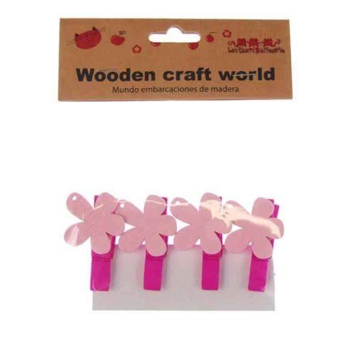 Μανταλάκια 4εκ., 4 τεμάχια λουλούδια ροζ