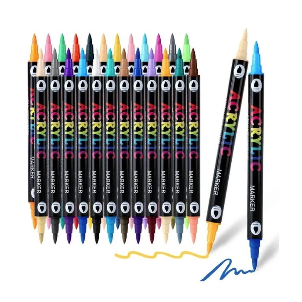 Σετ 24 ακρυλικών μαρκαδόρων διπλής όψης με δύο διαφορετικά χρώματα σε κάθε μαρκαδόρο, προσφέροντας συνολικά 48 αποχρώσεις. Διαθέτουν μαλακή brush μύτη για ευκολία στη χρήση και έντονη χρωματική απόδοση, ιδανικοί για ζωγραφική σε πέτρα, ξύλο, γυαλί, ύφασμα αλλά και DIY κατασκευές. Με βάση το νερό, γρήγορο στέγνωμα και ανθεκτικότητα στο νερό, προσφέρουν απόλυτο έλεγχο και εντυπωσιακά αποτελέσματα σε κάθε επιφάνεια.