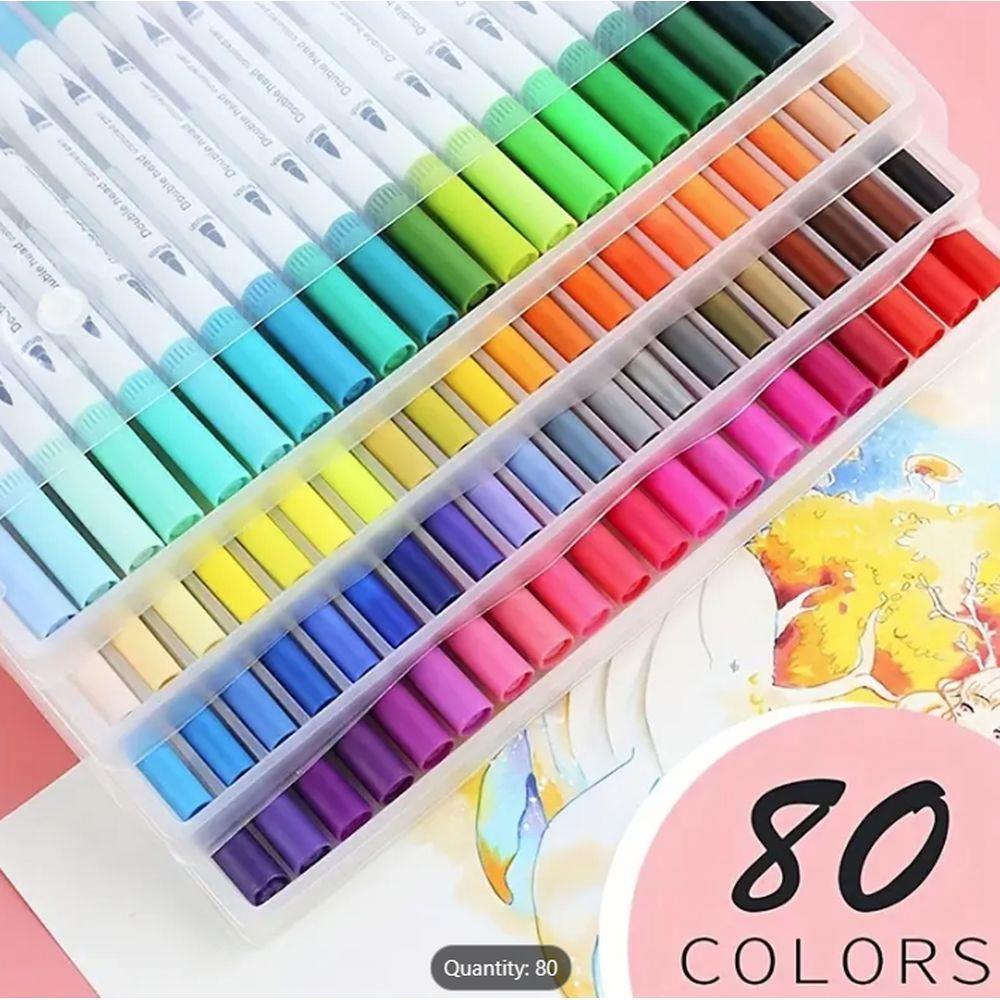 Σετ 80 μαρκαδόρων. Έχουν διπλή μύτη: εύκαμπτη brush για δημιουργική γραφή και λεπτή fine για ακριβείς λεπτομέρειες. Ιδανικοί για σχέδιο, καλλιγραφία, ζωγραφική, journaling και DIY δημιουργίες. Με πλούσια χρώματα για κάθε καλλιτεχνική έμπνευση!