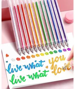 Σετ 12 glitter μαρκαδόρων gel με μεσαία μύτη 1.0mm, αδιάβροχο μελάνι και διάφανο σώμα για ορατότητα στάθμης. Ιδανικοί για cardstock, journaling, ζωγραφική, σημειώσεις και διακοσμητικά DIY projects. Χρώματα με λάμψη που ξεχωρίζουν σε κάθε δημιουργία!