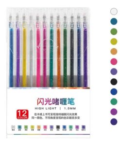 Σετ 12 glitter μαρκαδόρων gel με μεσαία μύτη 1.0mm, αδιάβροχο μελάνι και διάφανο σώμα για ορατότητα στάθμης. Ιδανικοί για cardstock, journaling, ζωγραφική, σημειώσεις και διακοσμητικά DIY projects. Χρώματα με λάμψη που ξεχωρίζουν σε κάθε δημιουργία!