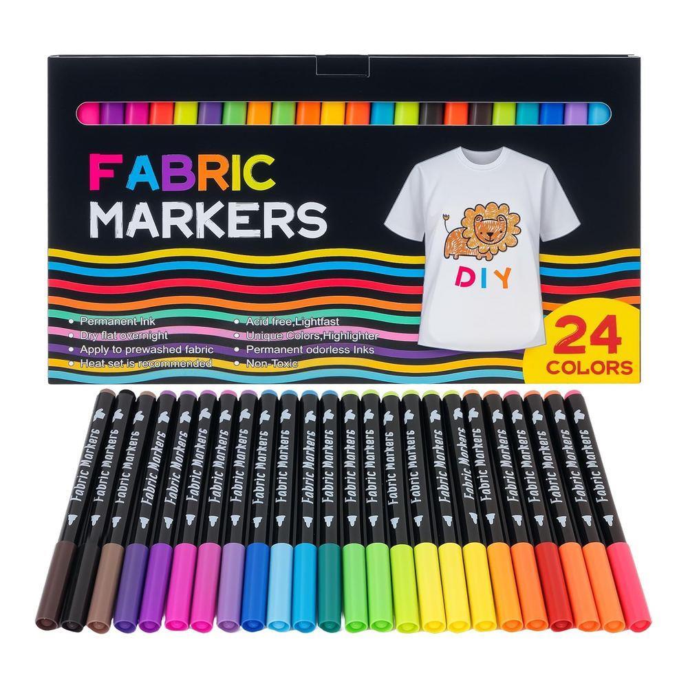 Σετ 24 μαρκαδόρων για ύφασμα, με 4 neon χρώματα. Κατάλληλοι για ζωγραφική, γράψιμο και DIY διακόσμηση σε μπλουζάκια, τσάντες και άλλα υφάσματα. Με έντονο χρώμα και αντοχή στο πλύσιμο.