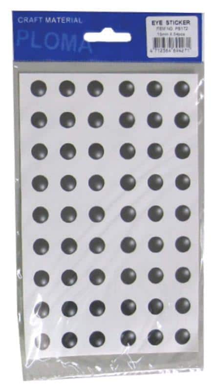 Μάτια αυτοκόλλητα 15χιλ. σε καρτέλα 54 τεμάχια