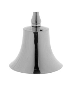 Μεταλλικό καμπανάκι τραπεζιού σε ασημί απόχρωση, κατασκευασμένο από αλουμίνιο. Μικρό και πρακτικό, μπορεί να χρησιμοποιηθεί ως διακοσμητικό ή λειτουργικό αξεσουάρ σε τραπέζι, γραφείο ή μπαρ. Διαθέτει κομψό σχεδιασμό και ανθεκτική κατασκευή.