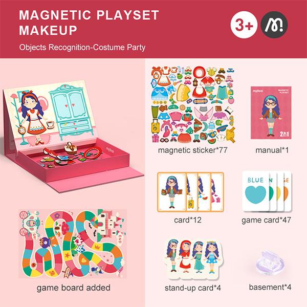Το παιχνίδι περιέχει 77 μαγνητικά στοιχεία, κοριτσίστικες φιγούρες και κάρτες,