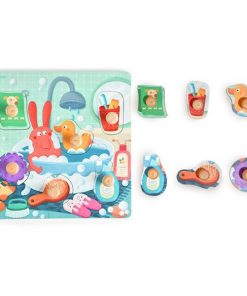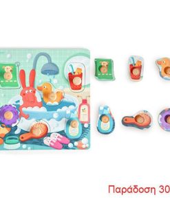 Ξύλινο παζλ- σφηνώματα 6 τεμαχίων με θέμα το λουτρό.