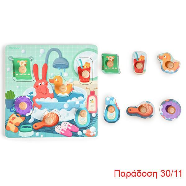 Mideer παζλ – σφηνώματα ξύλινο “Bath Time” 22,5×22,5εκ. 6 τεμαχίων