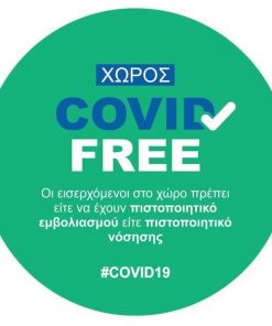 Next αυτοκόλλητο στρογγυλό “Χώρος covid free” διαμέτρου Ø16εκ.